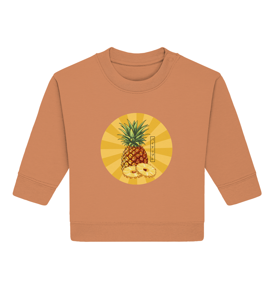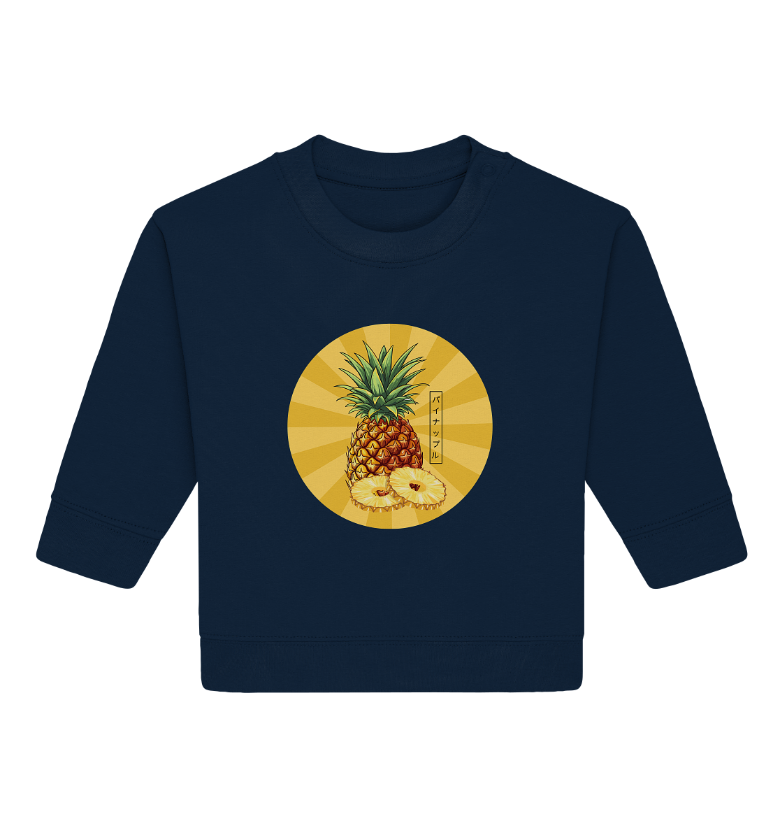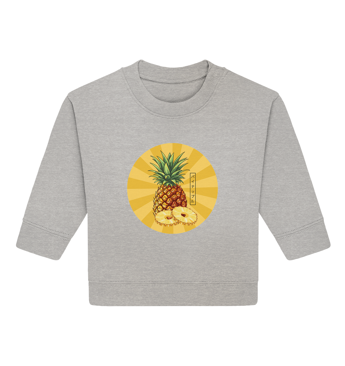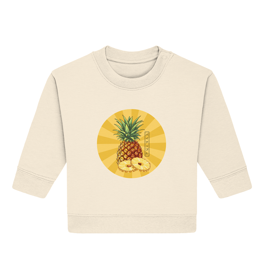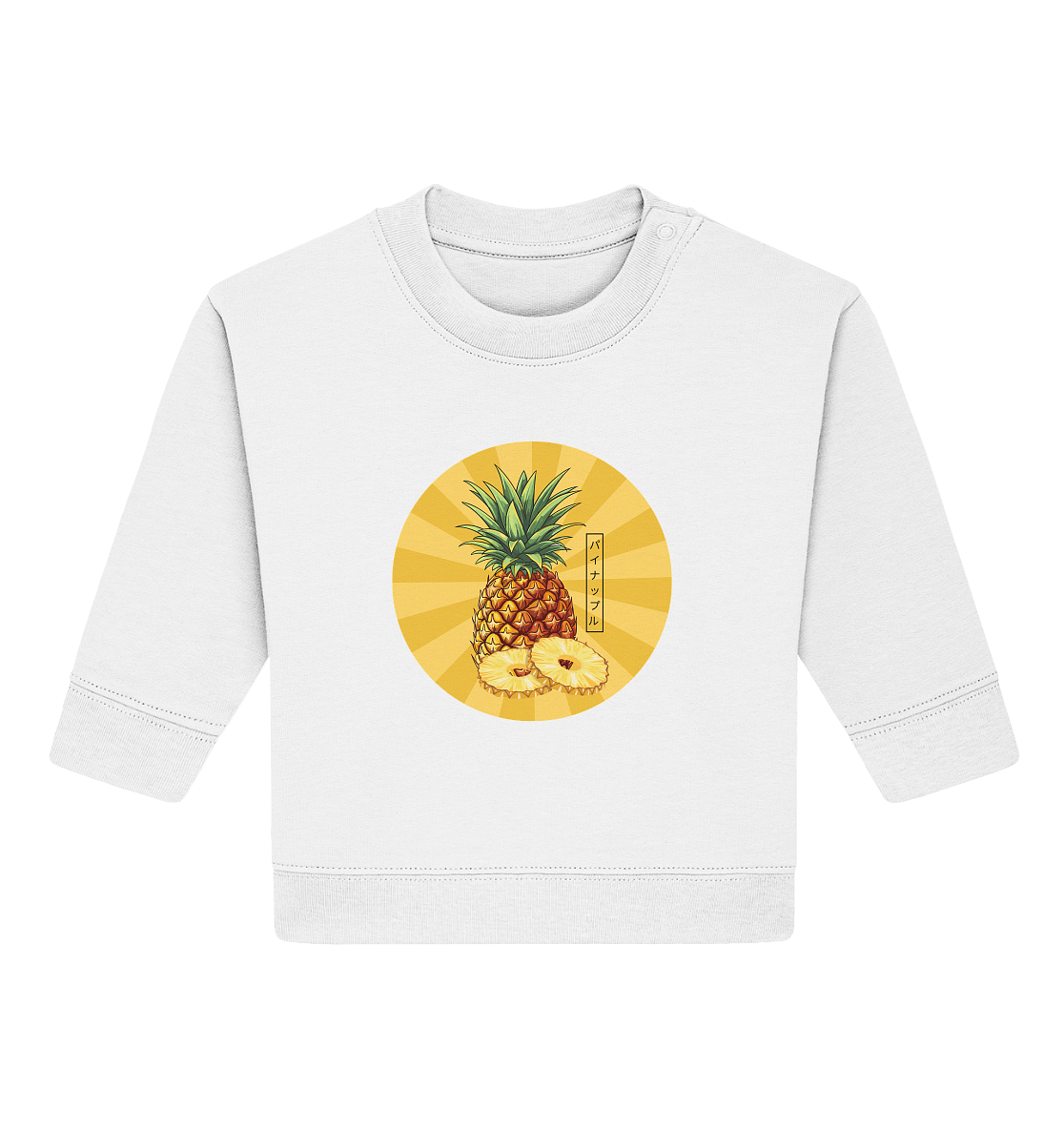 Dieses Baby Organic Sweatshirt bringt mit seinem fröhlichen Ananas-Design Sonnenschein und Abenteuerlaune in den Kinderalltag. Die leuchtenden Farben und das verspielte Motiv zaubern Eltern in Zürich und der gesamten Schweiz ein Lächeln ins Gesicht! Die süsse Ananas (Japanisch: パイナップル) ist ein Symbol für Gastfreundschaft und Freude – perfekt, um Ihr Kind stilvoll zu wärmen.
