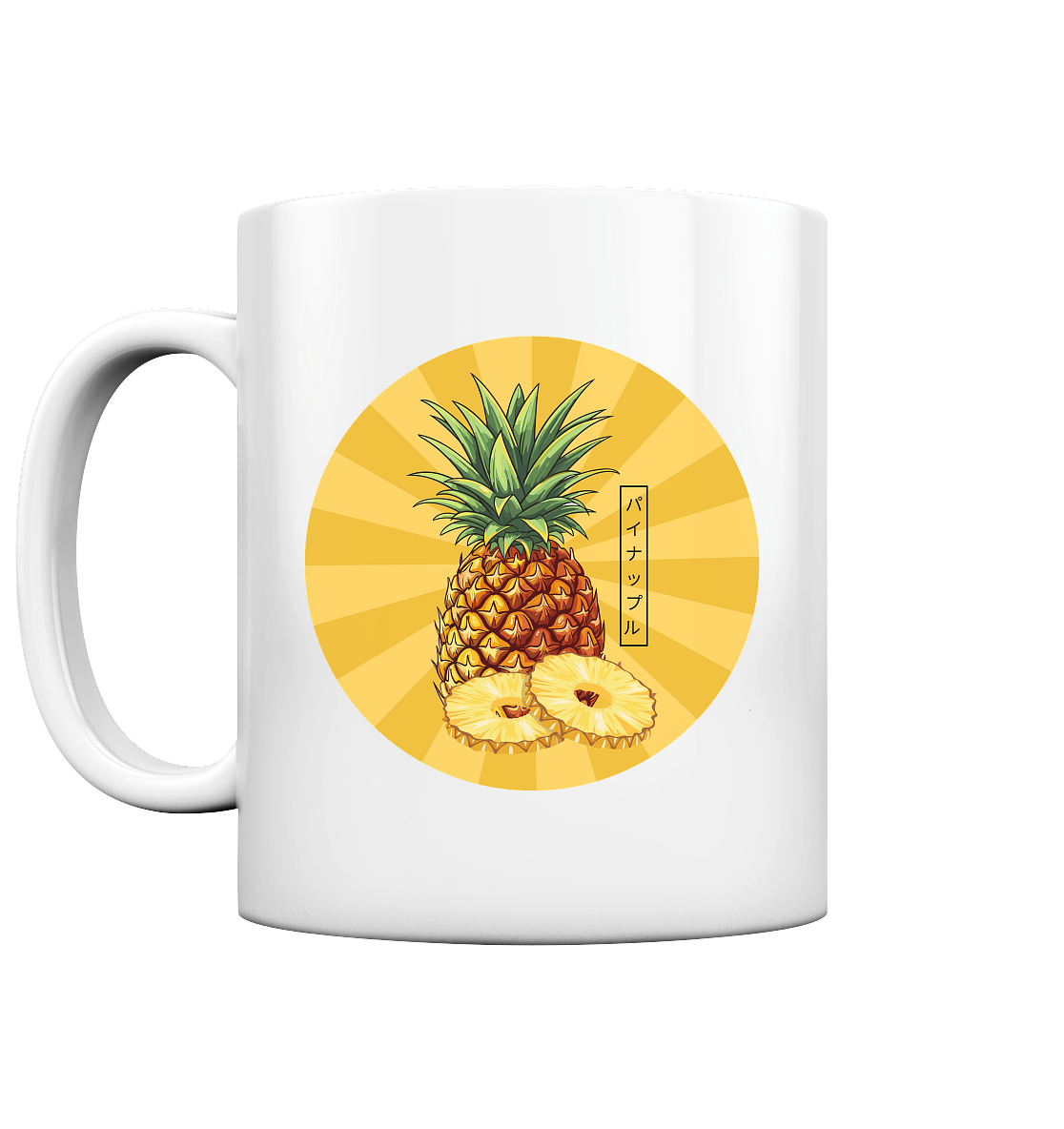Die süsse Ananas mit ihrem freundlichen Aussehen ist ein Symbol für Gastfreundschaft und Freude – perfekt für alle, die eine tägliche Dosis Optimismus brauchen. Die japanischen Schriftzeichen パイナップル (painappuru) untermauern das verspielte, tropische Motiv. Schenke dir jetzt ein Stück tropisches Vergnügen und lass die fröhliche Ananas zum täglichen Freund werden.