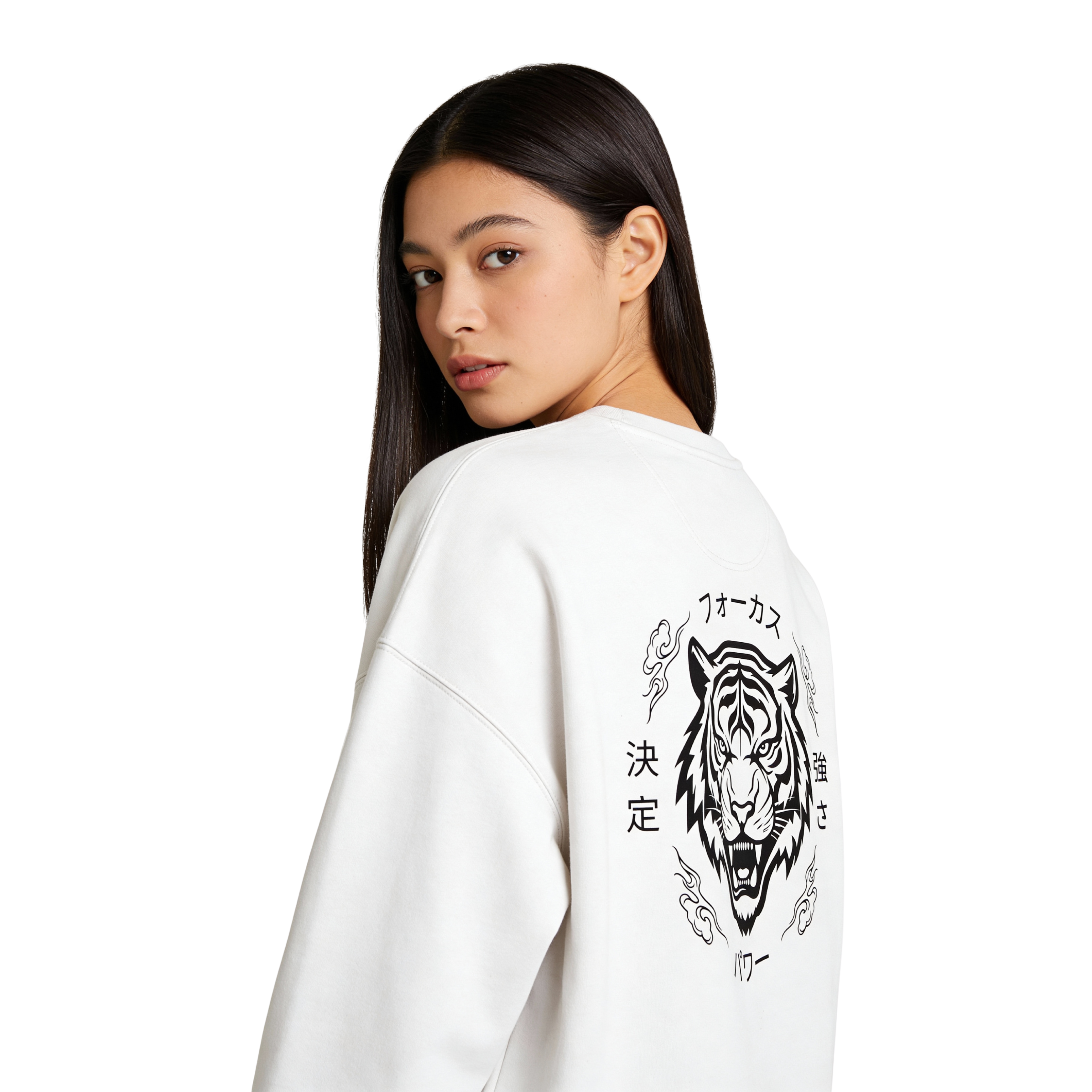 Womens Organic Boxcut Sweatshirt "Der Weg des Tigers": Kraft und Entschlossenheit