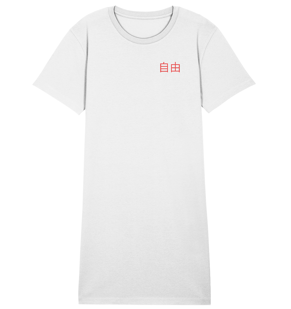 Die zentralen japanischen Schriftzeichen „自由“ (ausgesprochen: Jiyū) bedeuten "Freiheit" und stehen als kraftvolles Symbol für Selbstbestimmung, Individualität und unerschütterliche innere Stärke. Das Design dient als dein persönlicher Anker und erinnert dich täglich daran, deinen eigenen Weg zu gehen und deine Lebensphilosophie aktiv auszudrücken. Erschaffen für alle Frauen, die nicht nur nach Freiheit streben, sondern diese auch in ihrem täglichen Leben ausstrahlen möchten. Trage dieses Kleid und lass deine Haltung durch dein Outfit sprechen.
