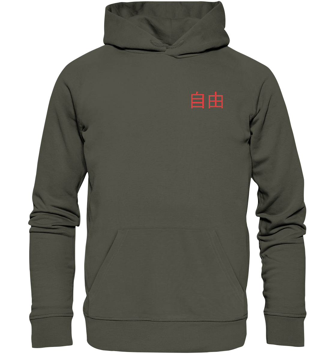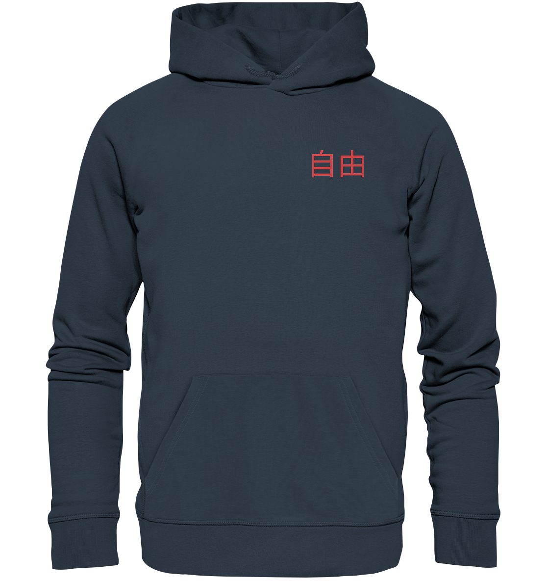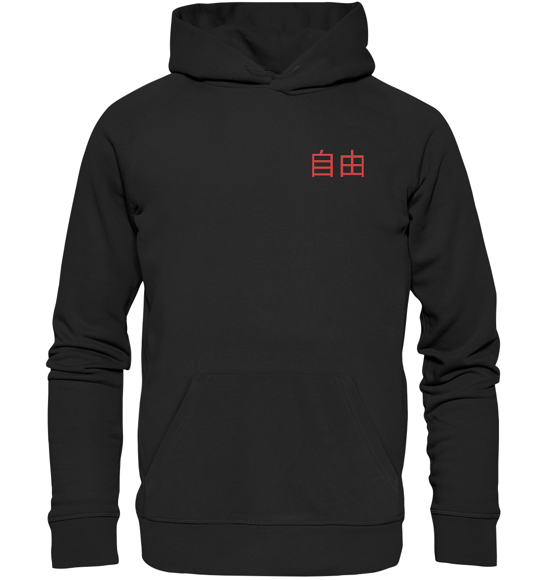 Die zentralen japanischen Schriftzeichen „自由“ (ausgesprochen: Jiyū) bedeuten "FREIHEIT" und stehen als kraftvolles Symbol für Selbstbestimmung, Individualität und unerschütterliche innere Stärke. Das Design dient als dein persönlicher Anker und erinnert dich täglich daran, deinen eigenen Weg zu gehen und deine Lebensphilosophie aktiv auszudrücken. Erschaffen für alle, die nicht nur nach FREIHEIT streben, sondern diese auch in ihrem täglichen Leben ausstrahlen möchten. Trage diesen HOODIE und lass deine Haltung durch dein Outfit sprechen.
