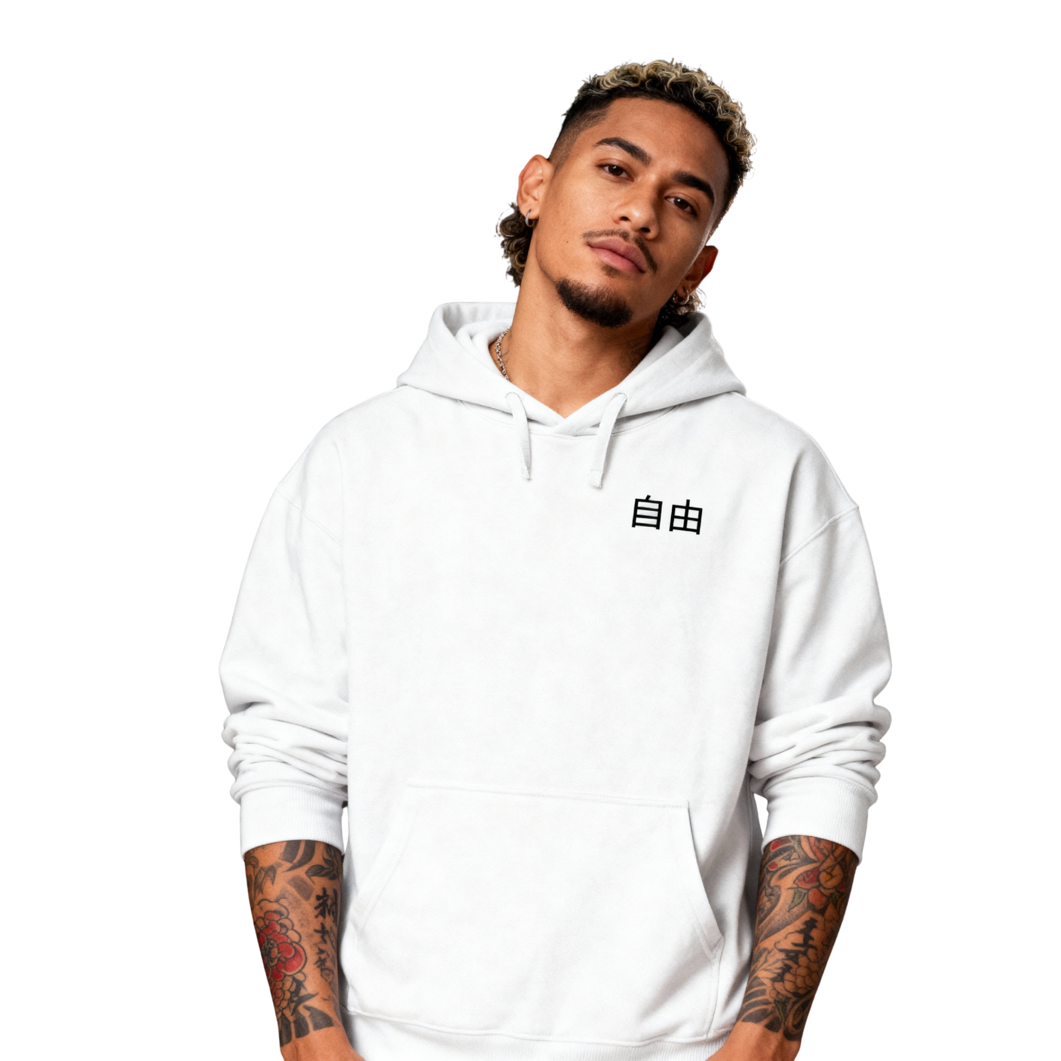 Die zentralen japanischen Schriftzeichen „自由“ (ausgesprochen: Jiyū) bedeuten "Freiheit" und stehen als kraftvolles Symbol für Selbstbestimmung, Individualität und unerschütterliche innere Stärke. Das minimalistische Design verbindet östliche Weisheit mit moderner Ästhetik. Es dient als dein persönlicher Anker und erinnert dich täglich daran, deinen eigenen Weg zu gehen und deine Lebensphilosophie aktiv auszudrücken. Erschaffen für alle, die nicht nur nach Freiheit streben, sondern diese auch in ihrem täglichen Leben ausstrahlen möchten. Trage diesen Hoodie und lass deine Haltung durch dein Outfit sprechen.