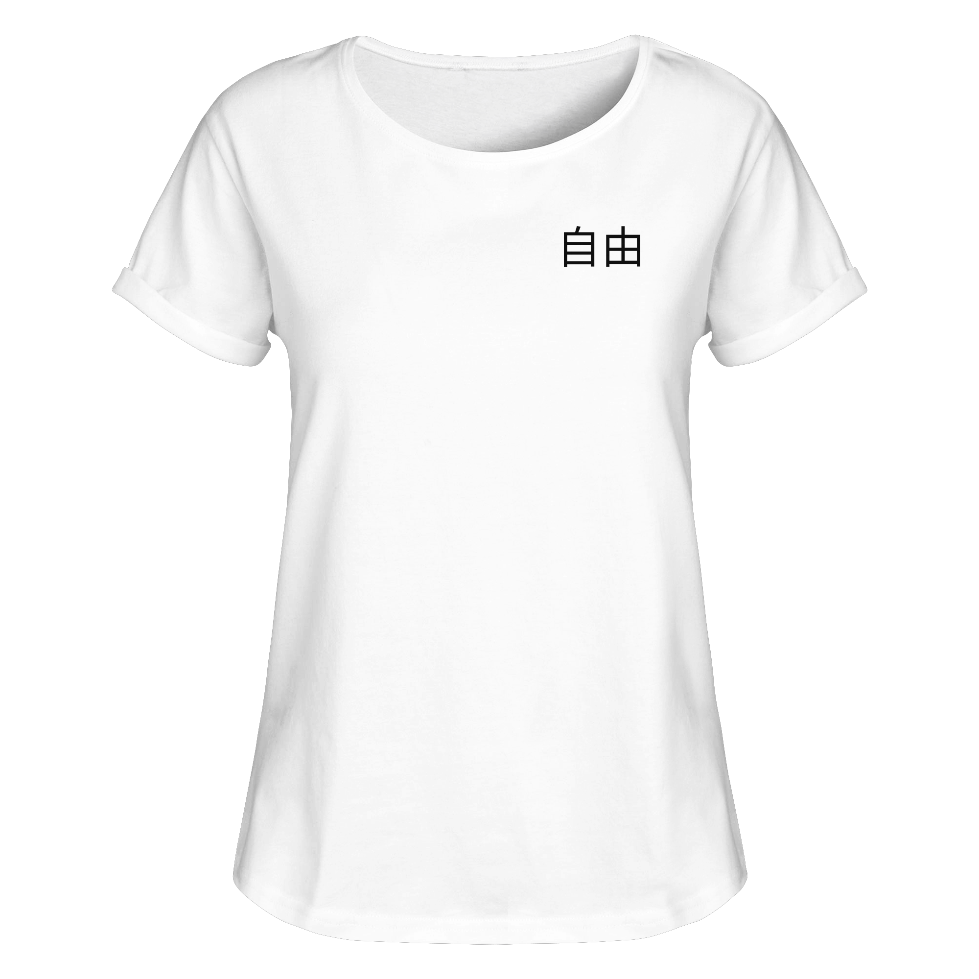 Womens Roll-Up T-Shirt "Freiheit": Schlichtes Design mit kraftvoller Botschaft