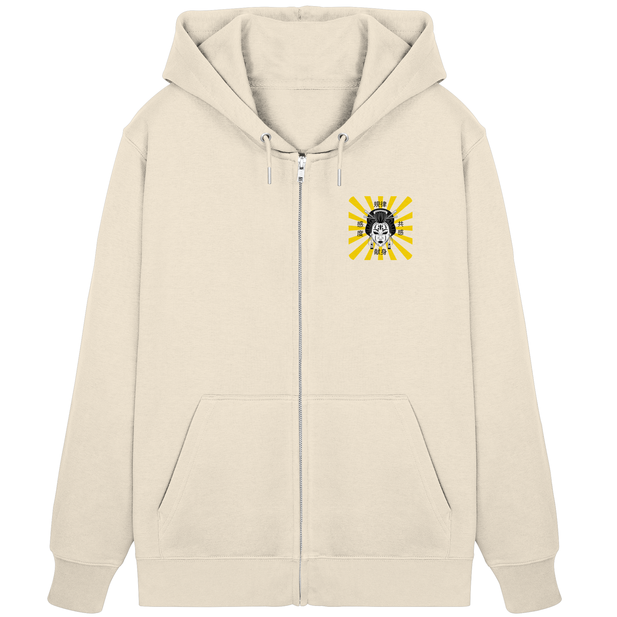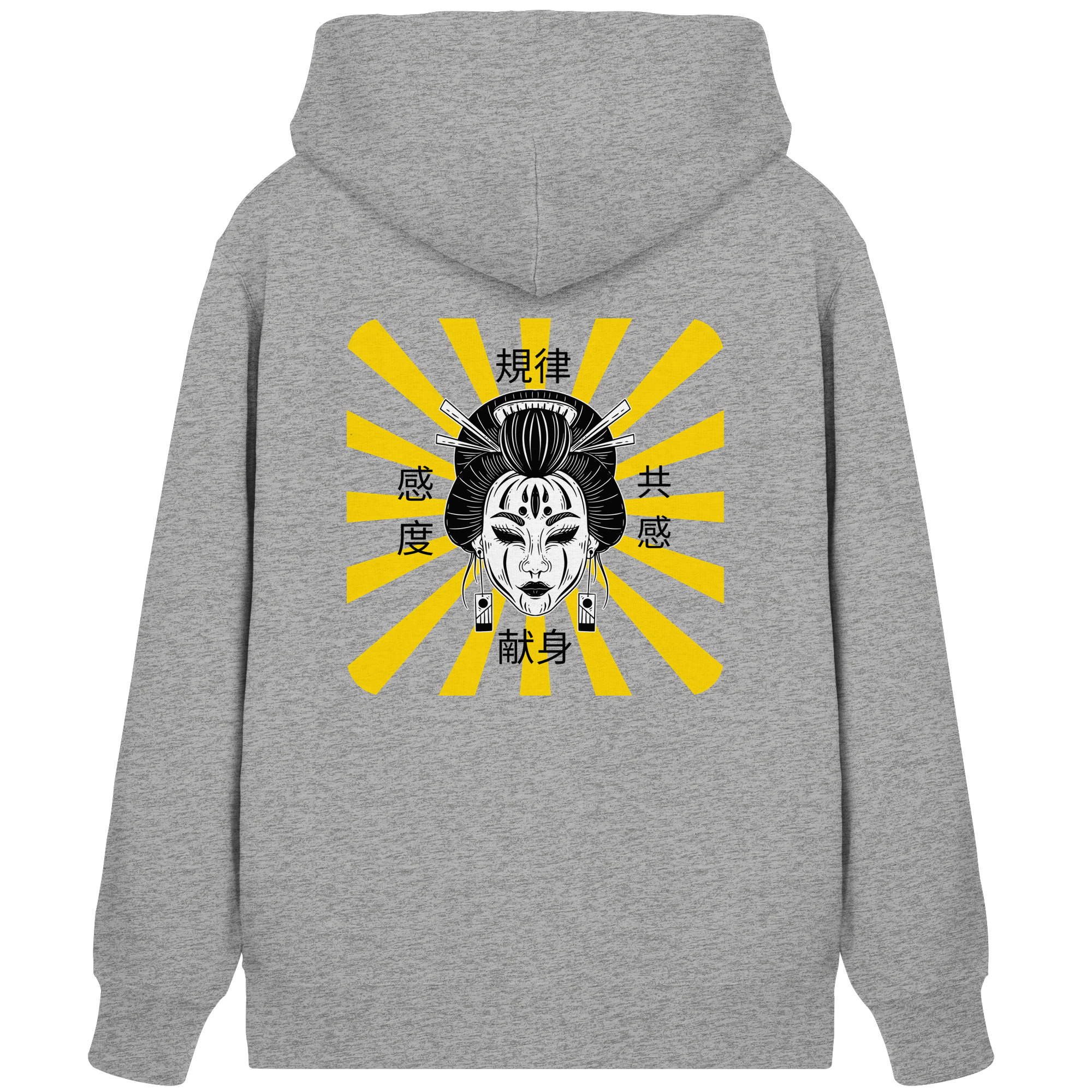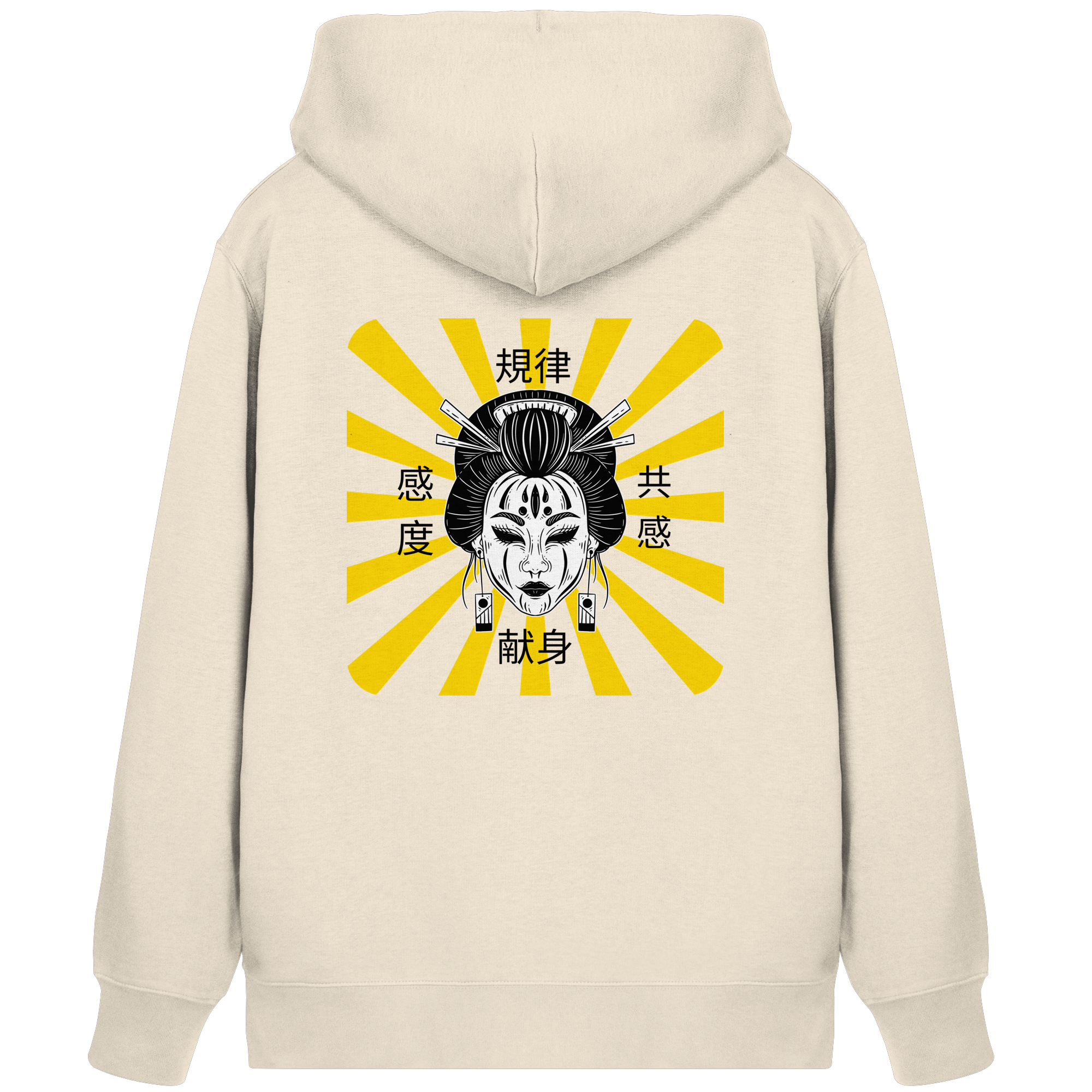 Dieser Organic Zipper ist weit mehr als eine Jacke – er ist ein tragbares Bekenntnis zur japanischen Tradition und zur Meisterschaft des Lebens. Das Motiv der Geisha verkörpert die faszinierende Verbindung von äusserer Schönheit und tiefer innerer Stärke, die dich bei jedem deiner Schritte begleitet.