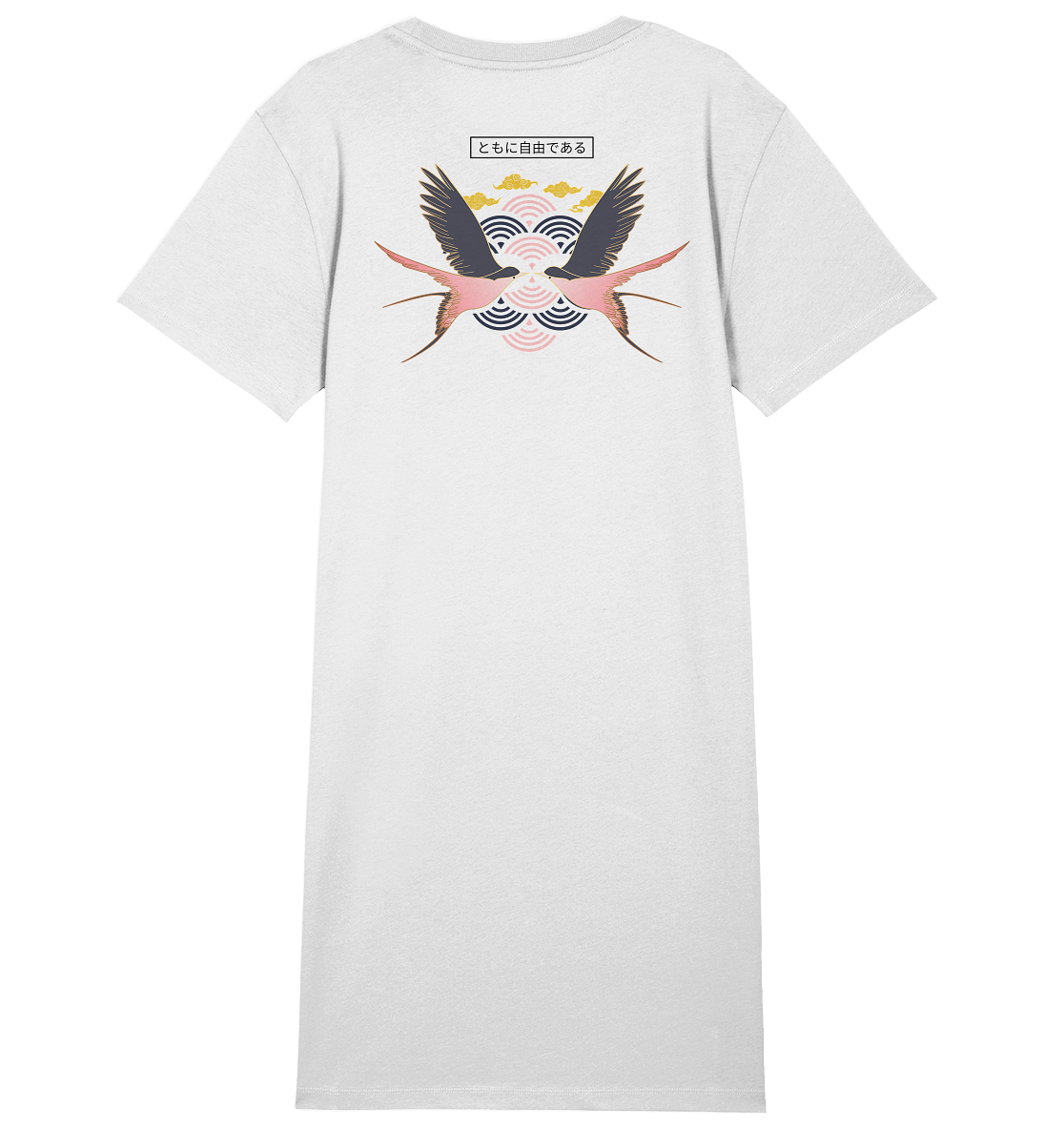 Neben seiner tiefen Symbolik überzeugt das Shirt Dress durch seine hochwertige Materialqualität und den femininen Schnitt. Es besteht zu 100 % aus ringgesponnener, gekämmter Bio-Baumwolle in feiner Single-Jersey-Verarbeitung, die sich besonders weich und angenehm auf der Haut anfühlt und höchste Nachhaltigkeitsstandards erfüllt.